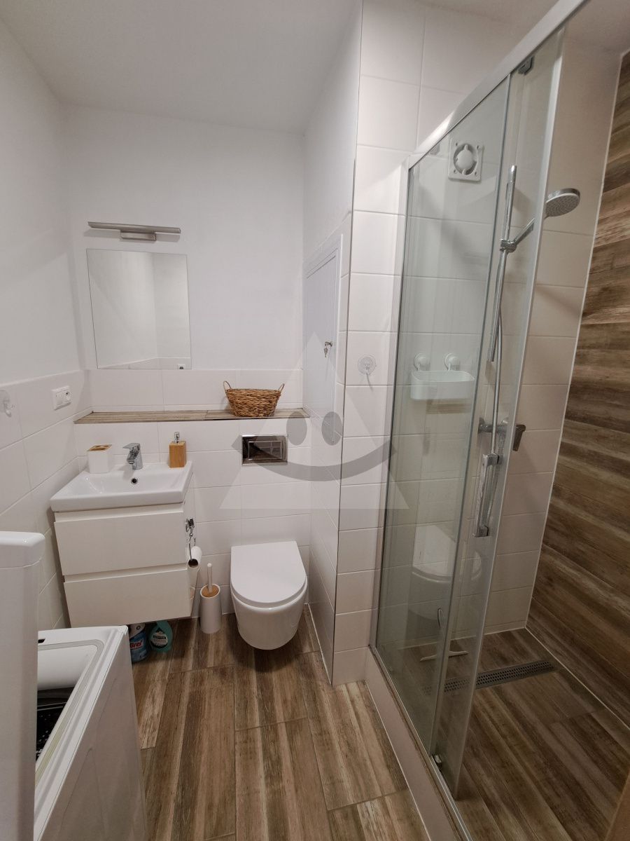 predsieň, kuchyňa so vstupom na lóggiu, spálňa, kúpeľňa so sprchovým kútom a WC.