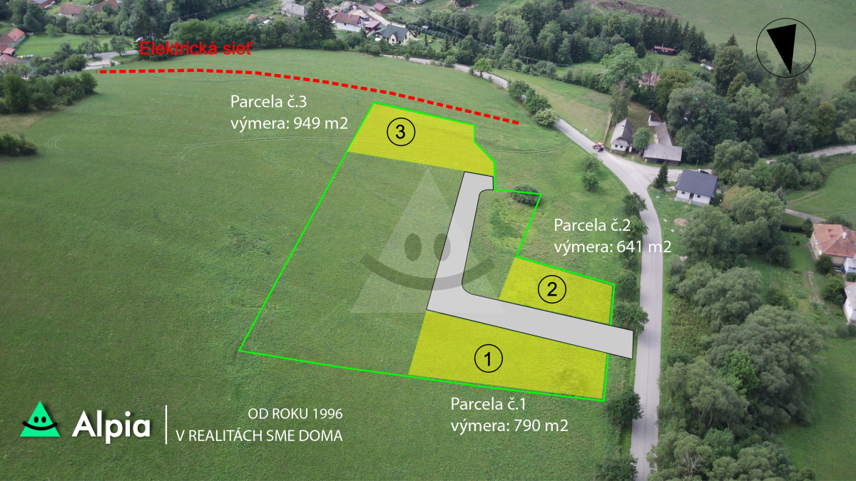 Land plot areas: No.1 – 790m², No.2 – 641m², No.3 - 949m²