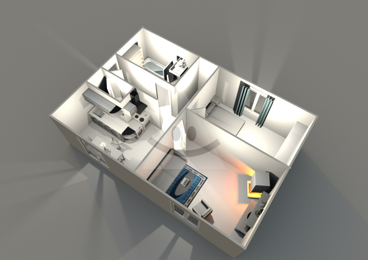 Dispozícia: Vstupná chodba, samostatné WC, murované jadro, kuchyňa, obývacia izba a spálňa.