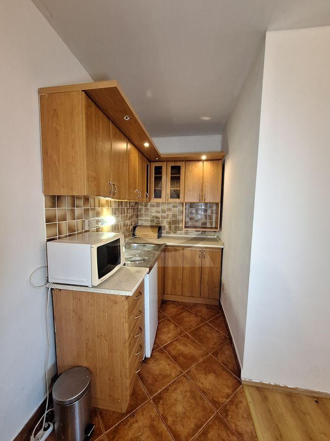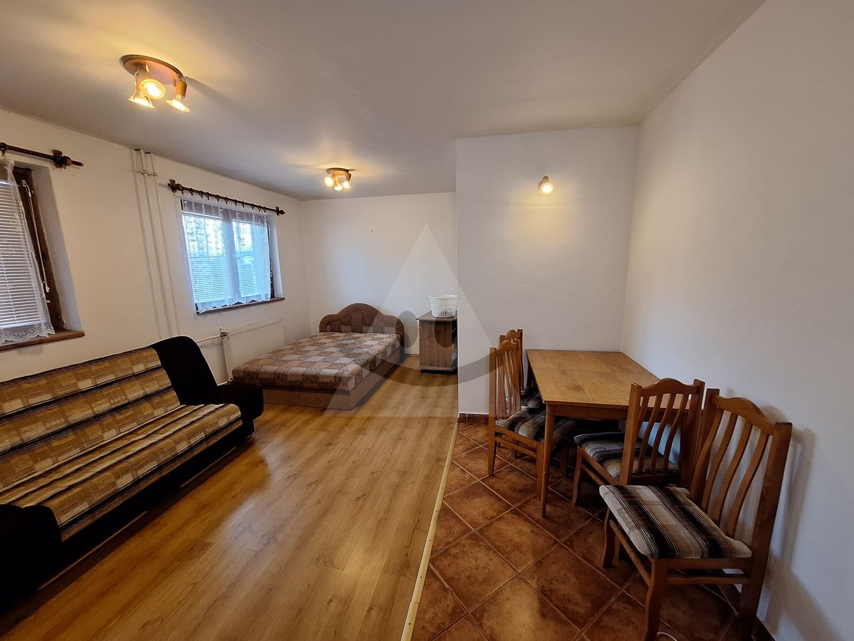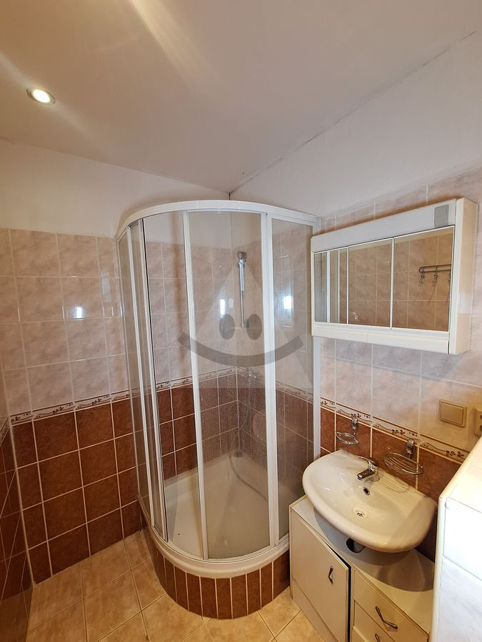 Obytná časť: Samostatný 1-izbový byt (chodba, kúpeľňa s WC, kuchynský kút spojený s izbou).
