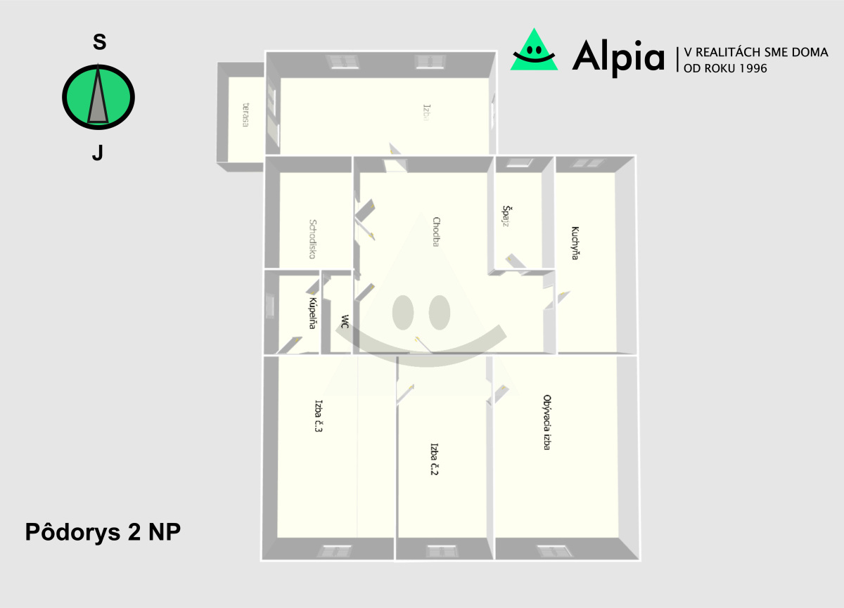2. NP (Poschodie): Hlavná bytová jednotka určená pre rodinu.