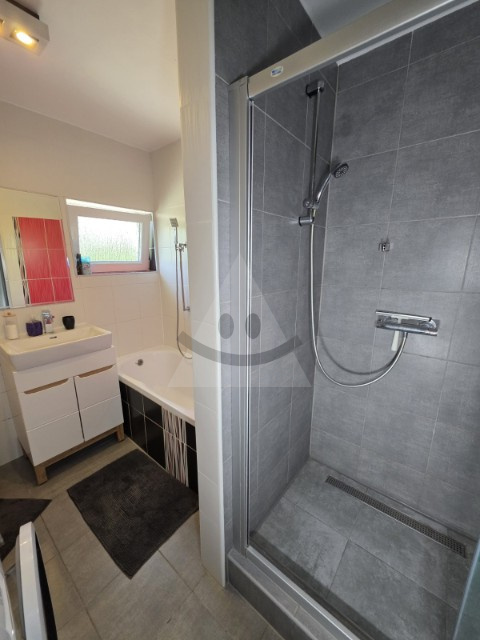 2 NP: priestranná obývacia izba s krbom, ktorá je šikovne spojená s jedálňou a kuchyňou, pohodlná spálňa a kúpeľňa vybavená sprchovým kútom , vaňou, WC a murovaná špajzka.